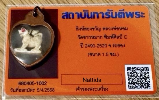 สิงห์สองขวัญ หลวงพ่อหอม วัดซากหมาก พิมพ์ศิลป์ C ปี 2490-2520 จ.ระยอง (ขนาด 1.5 ซม.) สิงห์ยุคต้นโดยแท้มาตรฐานเว็ป พร้อมบัตรรับรองจากทางเว็บครับ พิจารณาให้ชอบก่อนเคาะนะครับ จะได้ไม่เสียเวลาทั้ง 2 ฝ่ายเคาะเดียวแดงครับ |