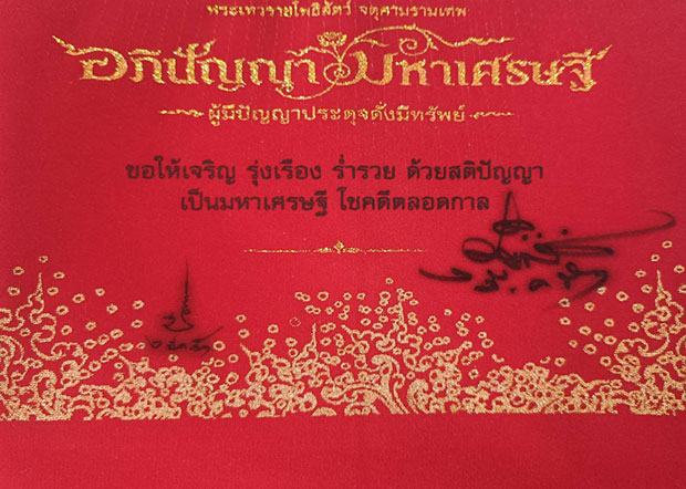 ขออนุญาตท่านอาจารย์ เฉลิมชัย โฆษิตพิพัฒน์ นำเสนอ ผ้ายันต์สีแดง อภิปัญญามหาเศรษฐี ผืนเล็ก พร้อมลายเซ็นต์สด 2 อาจารย์ ตำนานที่ทรงคุณค่า |