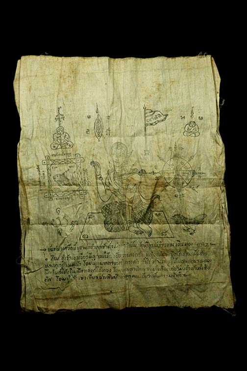 ผ้ายันต์ แม่นางกวัก เก่า ผ้าดิบ ไม่ทราบที่ ขนาด 9x12 นิ้ว |