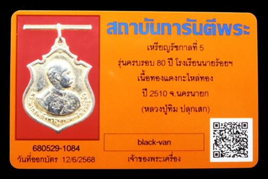 เหรียญ ร.๕ รุ่นแรก ร.ร.นายร้อยจปร. ครบรอบ ๘๐ ปี ลป.ทิมปลุกเสก ปี ๒๕๑๐ เนื้อทองแดง กะไหล่ทองแจกกรรมการ พร้อมบัตรรับรอง G-pra ครับ