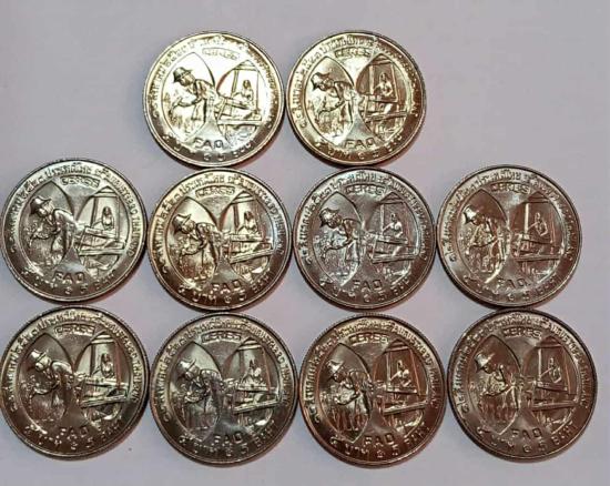 ถวายความอาลัย "พระบรมราชชนนีพระพันปีหลวง" เหรียญ 5 บาท พระราชินี FAO CERES 12 สิงหาคม พ.ศ.2523 สภาพไม่ผ่านการใช้งาน UNC สวยน้ำทองแกะจากถุงครับ จำนวน 10 เหรียญ ครับ #3#
