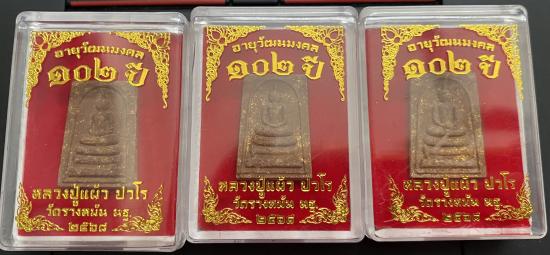 หลวงปู่แผ้ว ปวโร วัดรางหมัน พระผงสมเด็จพิมม์คะเเนน หลังรูปเหมือน ( 3 องค์ ) |
