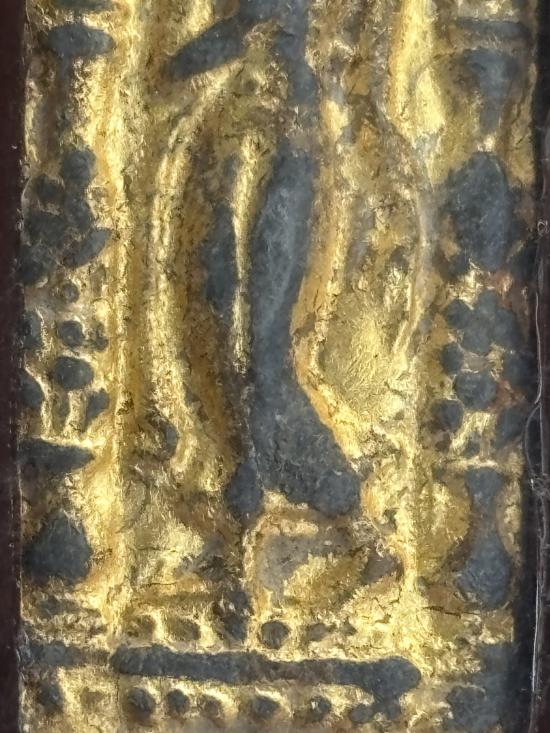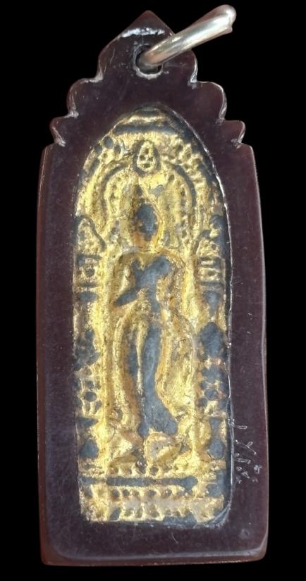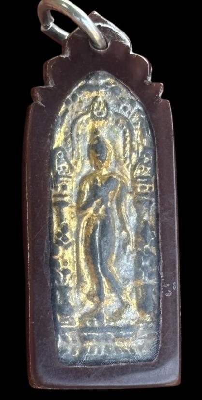 พระลีลาเนื้อชิ้นสองหน้าเลี่ยมกรอบเก่าไม่ทราบที่