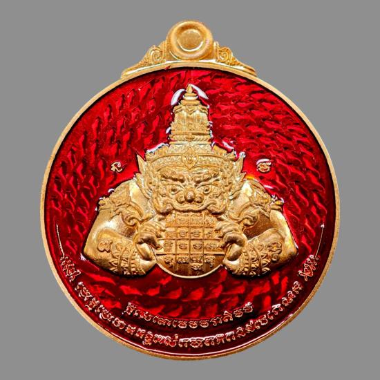 เหรียญพระราหู หลวงพ่อทอง วัดบ้านไร่ ปี2562 รุ่นหนุนดวง เนื้อทองแดงลงยาแดง