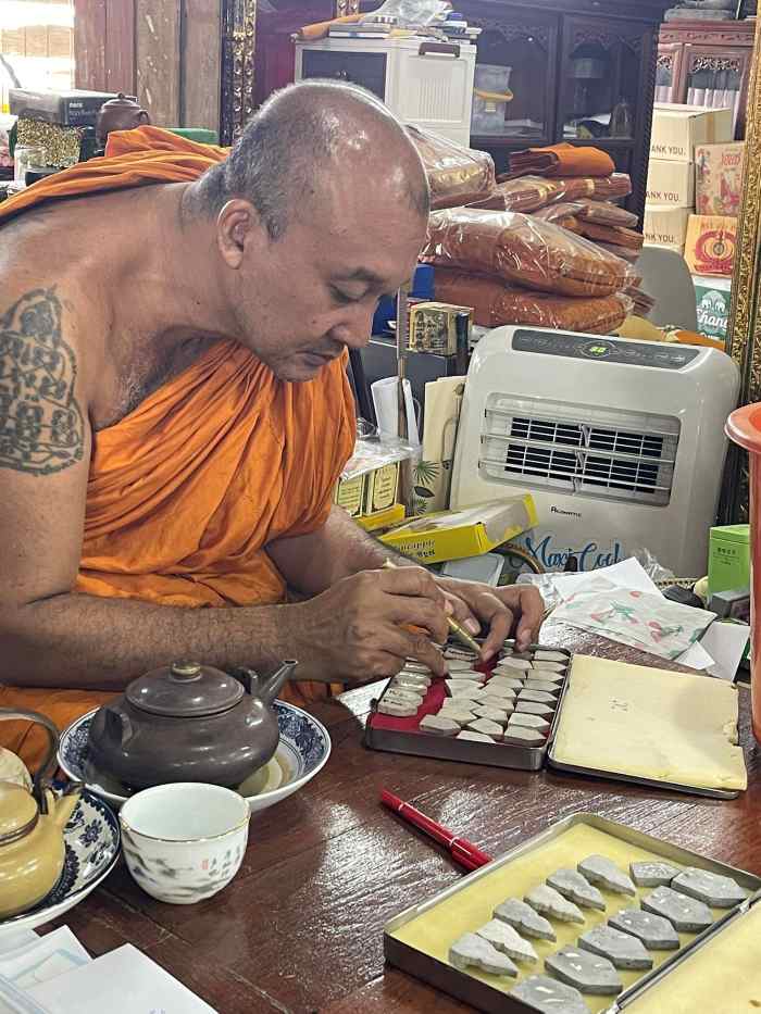 วัดใจ..พระขุนแผนเสาร์ 5 รุ่น 3 รายการที่ 6 ผสมผงพรายเราช่วยเขาเขาช่วยเรา หลังฝังมวลสาร จารมือ หลวงพ่อชำนาญ วัดชินวรารามวรวิหาร พร้อมตลับทองอิตาลี