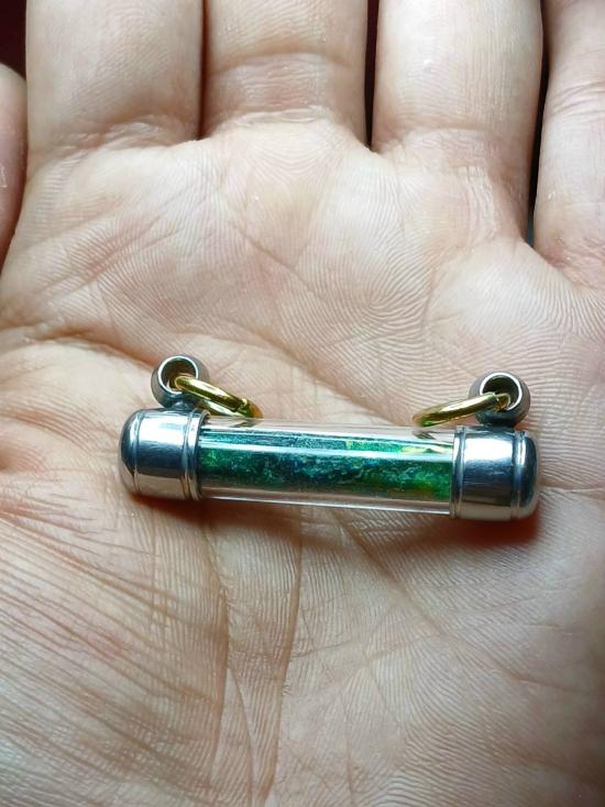 ชื่อพระเครื่อง ตะกรุดสาริกาสีผึ้งเขียว เนื้อทองเหลือง หลวงพ่อทาบ วัดกระบกขึ้นผึ้ง จ.ระยอง +เลี่ยมพร้อมใช้