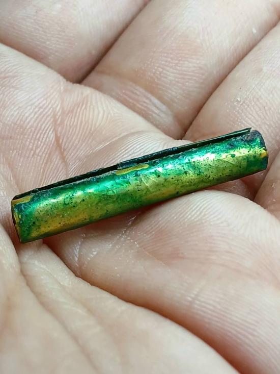 ตะกรุดสาริกาสีผึ้งเขียว เนื้อทองเหลือง หลวงพ่อทาบ วัดกระบกขึ้นผึ้ง จ.ระยอง +เลี่ยมพร้อมใช้
