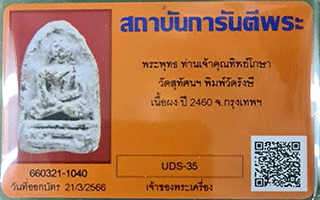 ชื่อพระเครื่อง พระพุทธ ท่านเจ้าคุณทิตย์โกษา วัดสุทัศนฯ พิมพ์วัดรังษี เนื้อผง ปี 2460 กรุงเทพฯ สวยเดิมพร้อมบัตรรับรอง