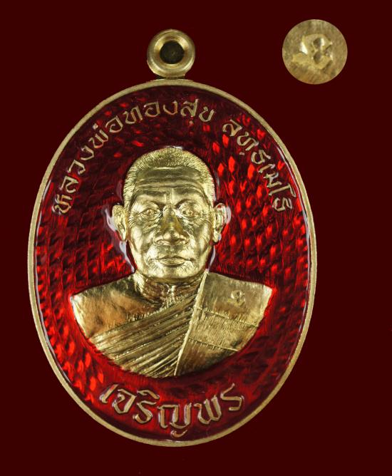 เหรียญเจริญพรเลี่อนสมณศักดิ์ หน้าเจริญพร เนื้อสัตตะลงยาแดง สร้างน้อย 380 เหรียญ หมายเลข *376*หลวงพ่อทองสุข วัดหนองฆ้อ ระยอง พร้อมกล่องเดิมจากวัด ( ขนาดความสูง 4.3 ซม. กว้าง 3 ซม. ) |