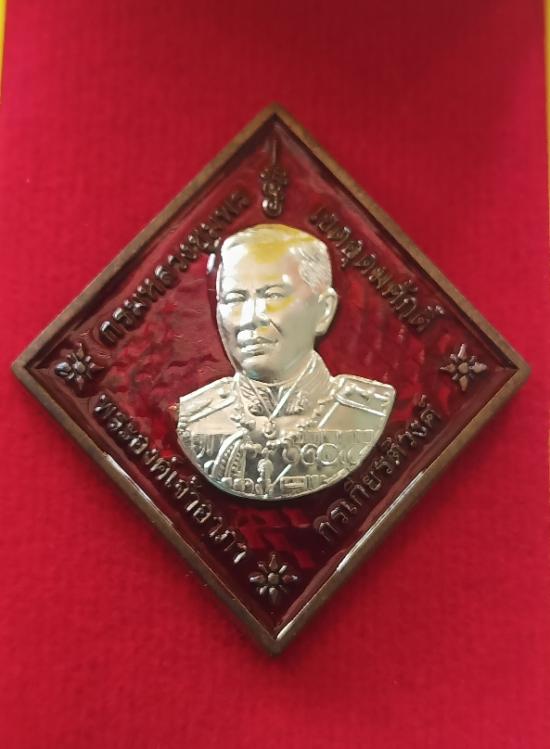 เหรียญกรมหลวงชุมพร เขตอุดมศักดิ์ หลวงปู่ศิลา วัดพระธาตุหมื่นหิน ศิษย์ ทร.สร้างถวาย เนื้อนวะโลหะลงยาแดงหน้ากากเงิน