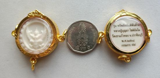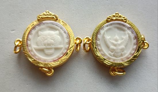 วัดใจเคาะเดียวแดงจ้า คชสารแกะรูปเสือ+ครุฑ หมายเลข3กับ99 เลี่ยมกรอบชุบทอง3ห่วง หลวงปู่บุญมา เคาะเดียวแดงจ้า |