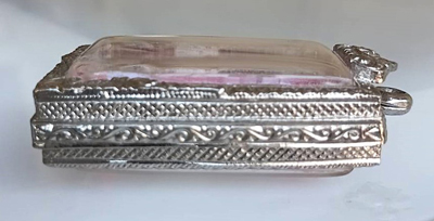 กรอบ (คนขายบอกว่านิกเกิ้ล) ซื้อมา 12 ปีแล้วไม่ลอกไม่ได้ใช้ ขนาด 2.4X3.7 c.m. |