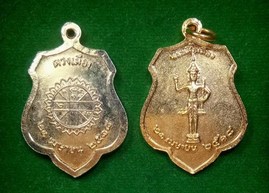 เหรียญหลักเมืองกรุงรัตนโกสินทร์ หลังดวงเมือง และหลังพระเสื้อเมือง กะไหล่ทอง ปี18 รวม 2 เหรียญ |