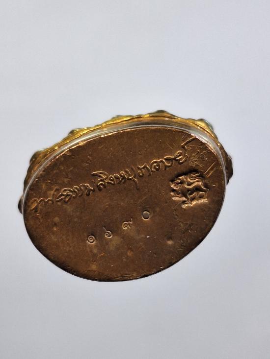 พระกริ่ง สิงหบุราจารย์ (เจริญพร) ก้นลายเซนต์ หลวงพ่อจรัญ วัดอัมพวัน สิงห์บุรี เนื้อทองแดง กล่องเดิม ๆ ครับ |