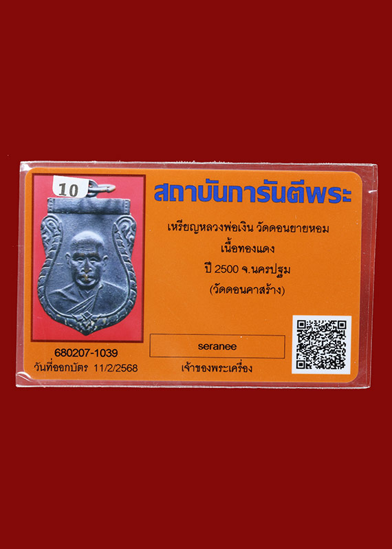 เหรียญหลวงพ่อเงิน วัดดอนยายหอมครับ พร้อมบัตรรับรองจากเว็บ ตระเวนเหมาพระตามบ้าน ขายทุกราคาเพราะพระเหมามาซอยขายปลีก วัดใจเท่าไหนเท่านั้นทุกราคาครับ
