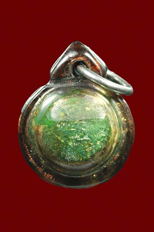 ชื่อพระเครื่อง ลูกอมสีผึ้งเขียว (เกี้ยวสาว) หลวงพ่อทาบ วัดกระบกขึ้นผึ้ง ระยอง เลี่ยมเดิมๆ