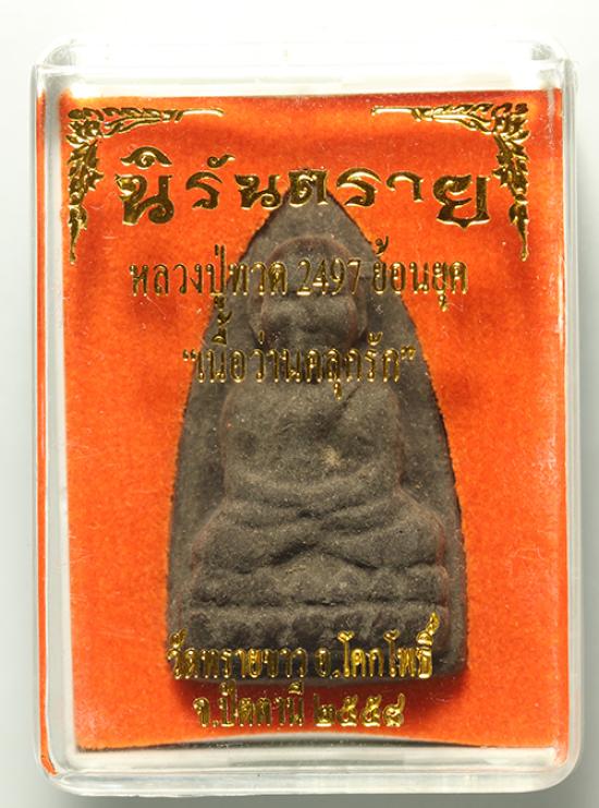 ว่าน หลวงปู่ทวด พิมพ์ใหญ่ ย้อนยุค2497 เนื้อว่านคลุกรัก ฝังตะกรุดทองแดง รุ่นนิรันตราย วัดทรายขาว จ.ปัตตานี ปี 2558 |