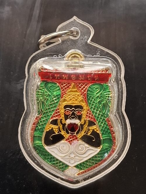 ชื่อพระเครื่อง เหรียญพระราหูอมจันทร์ หลวงปู่ศิลา เมตตาอธิษฐานจิต รุ่นเหนือดวง เนื้อทองเหลืองลงยา เลี่ยมกรอบ #1