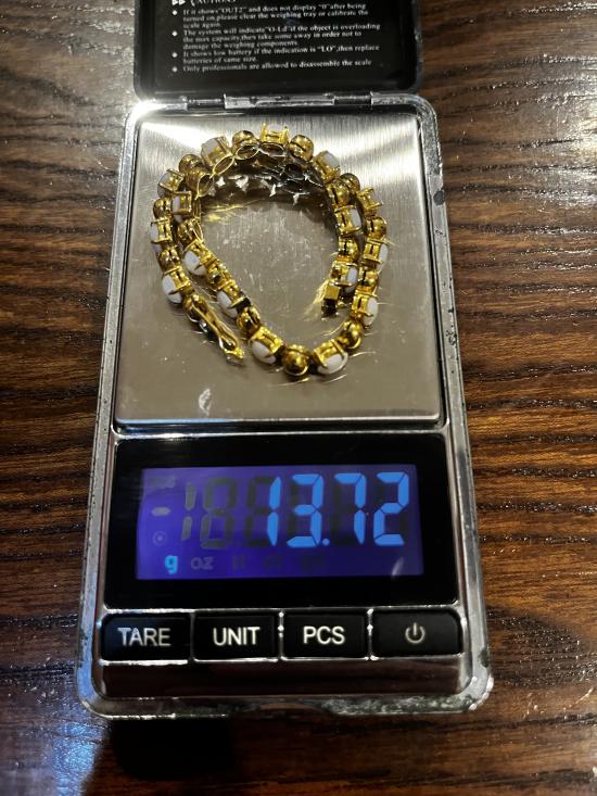สร้อยข้อมือทอง 81% ( หินโอปอ ) น้ำหนักรวม 13.7 กรัม ความยาว 8 นิ้ว สภาพสวย