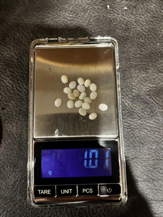 น้ำหนัก หินโอปอ รวม 19 เม็ด ประมาร 1 กรัมกว่าๆเองครับ
