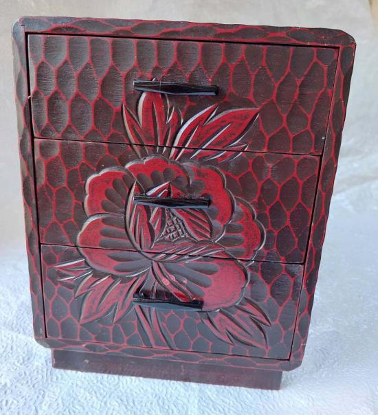 ***วัดใจ***กล่องไม้วินเทจญี่ปุ่นคามาคุระโบริ งานฝีมือเก่าแกะลายญี่ปุ่น 3 ลิ้นชัก สามารถวางพระบูชา 5 นิ้วได้ |