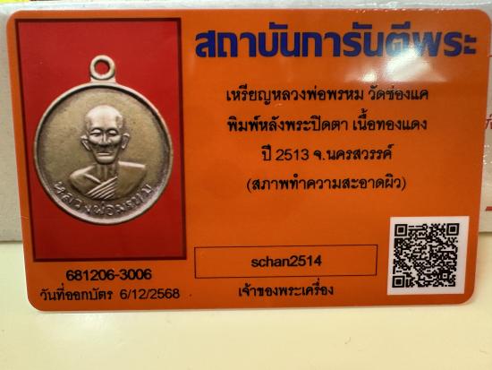เหรียญหลวงพ่อพรหม วัดช่องแค พิมพ์หลังพระปิดตา เนื้อทองแดง พร้อมบัตรรับรองของ G |