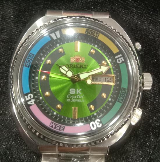 ชื่อพระเครื่อง ORIENT SK CRYSTAL AUTOMATIC หน้าปัดสีเขียวอ่อนสภาพใหม่เก่าเก็บสวยพร้อมใช้งานครับ