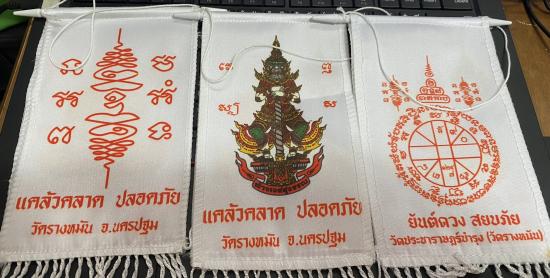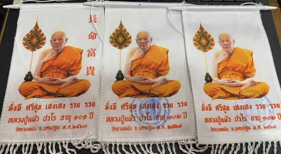 พระหลวงปู่ดีทุกรุ่นค่ะพี่ๆ พร้อมธงเเขวนหน้ารถ นะคะ |
