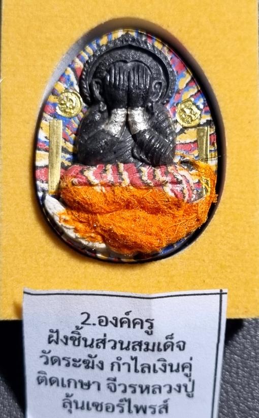 - รก.2 องค์ครู ฝังชิ้นส่วนสมเด็จวัดระฆัง กำไลเงินคู่ ตะกรุดทอง ติดเกศา จีวรหลวงปู่ (รก. 2 สร้างน้อย)