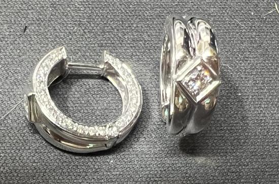 ต่างหูทองคำขาว 18เค แซมเพชรแท้รวมประมาณ 1.05 กะรัต