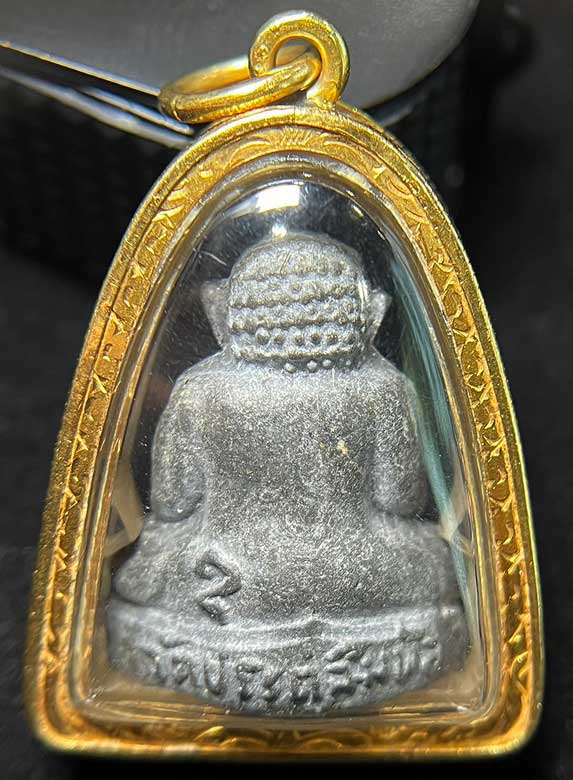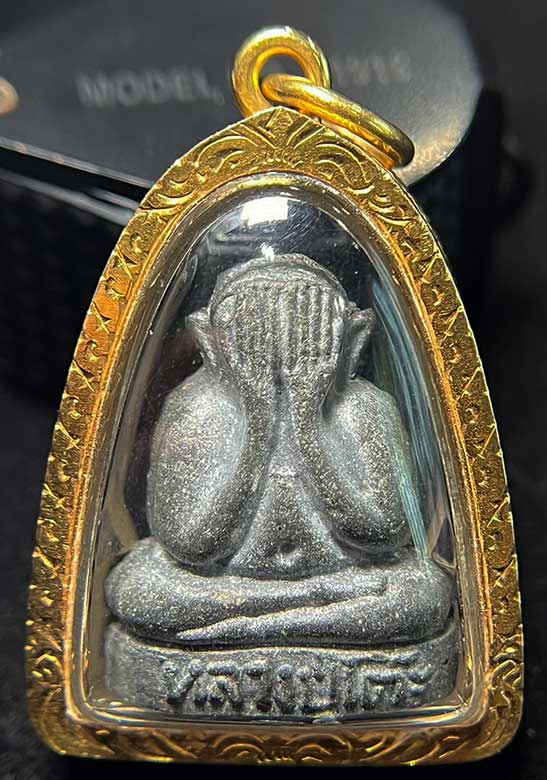 พระปิดตาตุ๊กตาเล็ก บล็อกเส้นเลือด(นิยม) ใบลาน มีเกศา หูกาง ร่องนิ้วลึก เม็ดพระศกเด้งๆ เลี่ยมทองพร้อมใช้ |