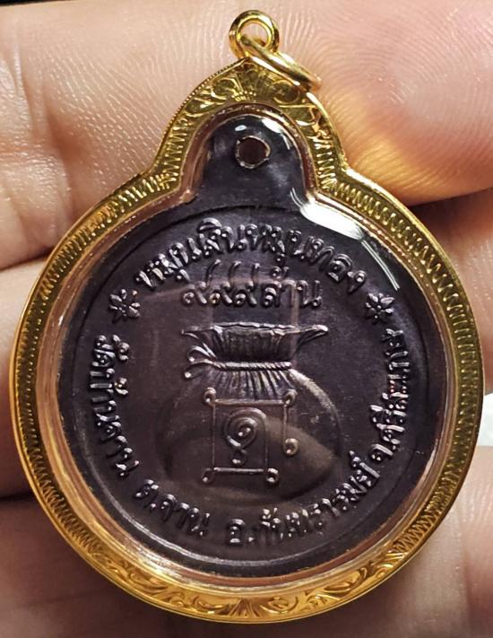 เหรียญหมุนเงินหมุนทอง ลป.หมุน รุ่น เจริญลาภ (บล็อกประคำ 18 เม็ด) เลี่ยมทองพร้อมใช้ สวยๆ