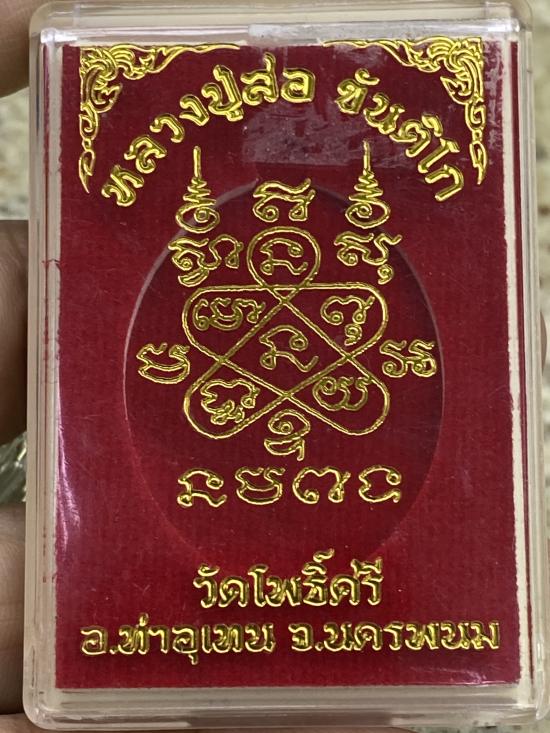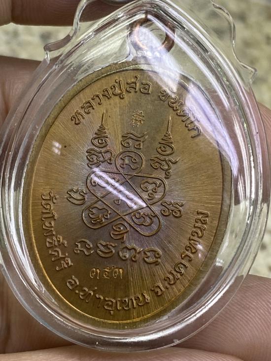 รายละเอียด เหรียญ "ห่วงเชื่อม" หลวงปู่สอ ขันติโก วัดโพธิ์ศรี จ.นครพนม เนื้อ สัมฤทธิ์ หน้ากากทองทิพ พร้อมเลี่ยม กล่อง จมูกสมบูรณ์ เลข 353