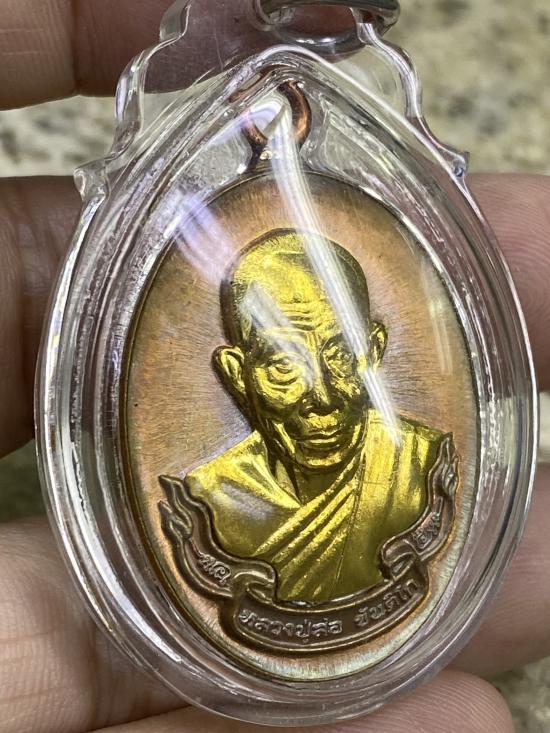 เหรียญ "ห่วงเชื่อม" หลวงปู่สอ ขันติโก วัดโพธิ์ศรี จ.นครพนม เนื้อสัมฤทธิ์หน้ากาก ทองทิพย์ เลข 353 พร้อมเลี่ยม จมูกสมบูรณ์ กล่อง