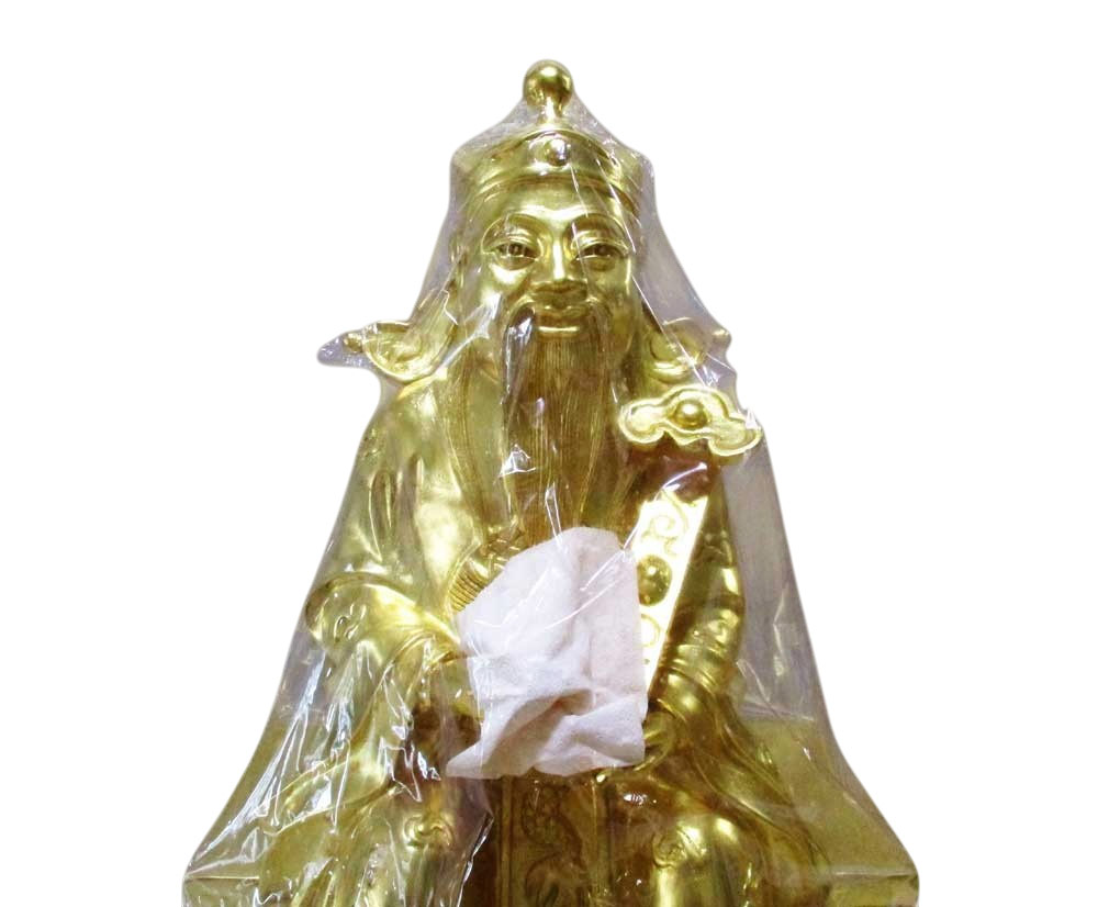 เทพเจ้าแห่งโชคลาภ ไช้ซิงเอี้ย วัดพระพุทธบาทราชวรมหาวิหาร จ.ส ระบุรี พ.ศ.2547 เนื้อโลหะผสมปิดทองคำเปลว ขนาดฐานกว้าง 16 นิ้ ว สูงรวมฐาน 25 นิ้ว |
