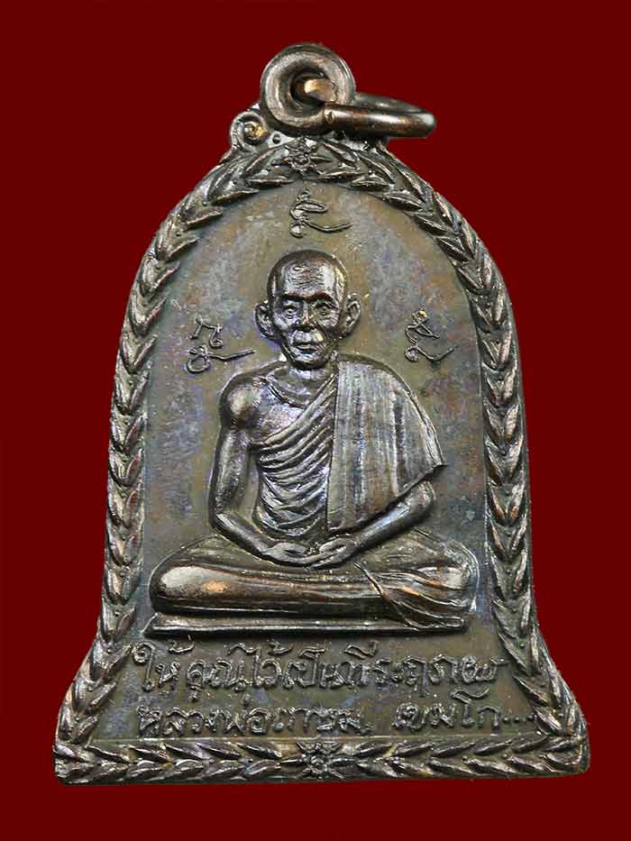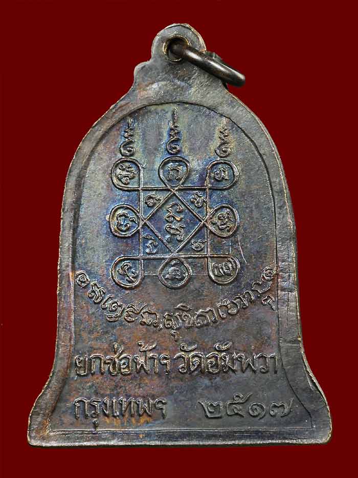 วัดใจ เหรียญระฆัง หลวงพ่อเกษม เขมโก สำนักสุสานไตรลักษณ์ จ.ลำปาง งานยกช่อฟ้าวัดอัมพวา กรุงเทพฯ พ.ศ.2517 |