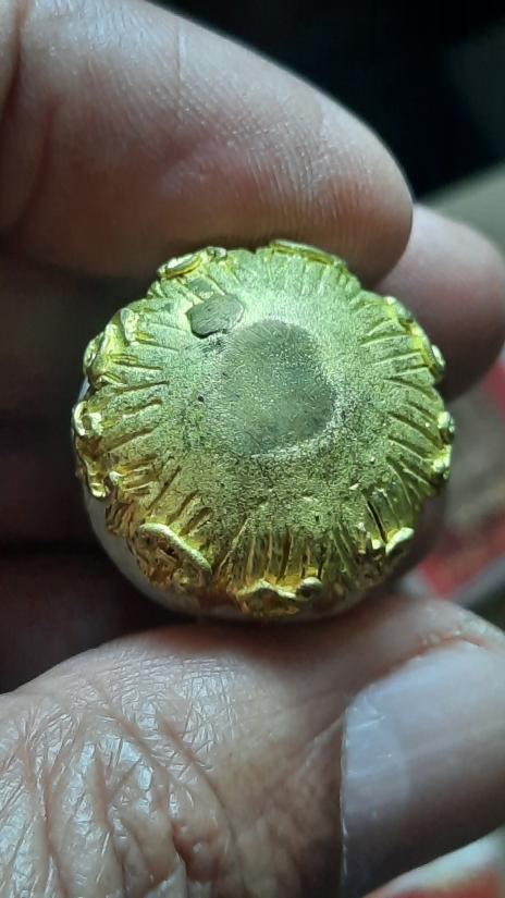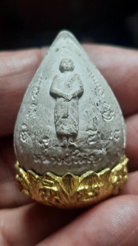 พระผงหลวงปู่ใหญ่ รูปดอกบัว ฐานทองเหลือง ไม่ทราบที่