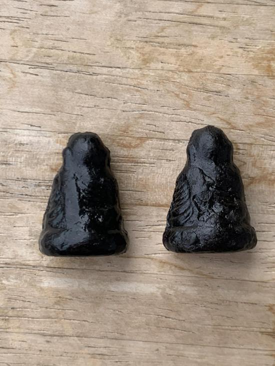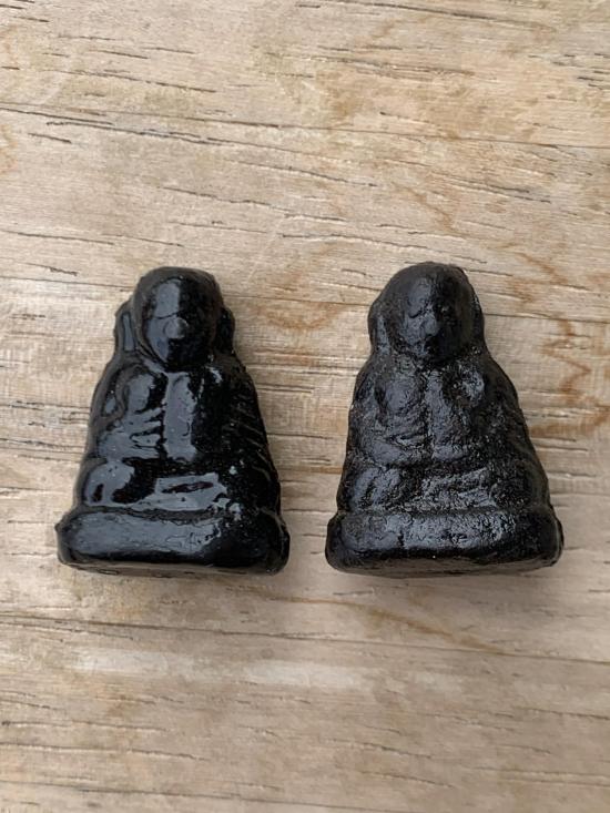 รูปเหมือนเนื้อผงคลุกรักจุ่มรัก หลวงพ่อเงิน วัดบางคลาน ไม่ทราบปีสร้าง 2 องค์