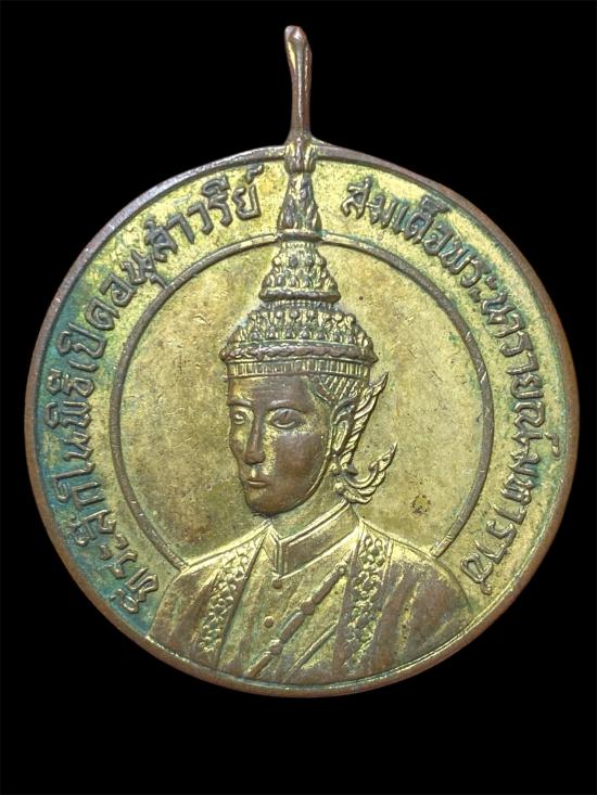 เหรียญที่ระลึกในงานพิธีเปิดอนุสาวรีย์ สมเด็จพระนารายณ์มหาราช ปี 2514 กะไหล่ทองเดิมครับ |