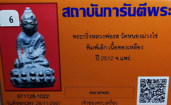 พระกริ่งหลวงพ่อรส วัดหนองม่วงไข่ พิมพ์เล็ก เนื้อทองเหลือง ปี2512 จ.แพร่ + บัตรG-pra สภาพเดิมค่ะ |