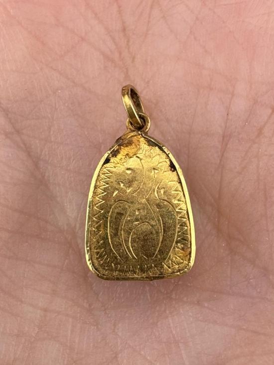 พระรอดเลี่ยมทองคำปิดหลัง พร้อมใบเปอร์เซ็นทอง 72.2%