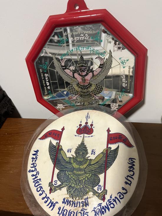 เคาะเดียวครับ ยกคู่กระจกแปดเหลี่ยมกับภาพกระดาษเคลือบกันน้ำหลวงพ่อวราห์วัดโพธิ์ทองมีรอยจารทั้งคู่ งานเก่าหลายปีแล้วครับ ตั้งแต่เป็นพระครูวินัยธร