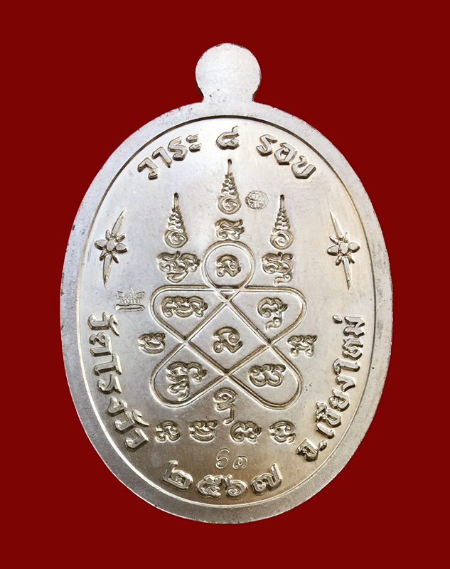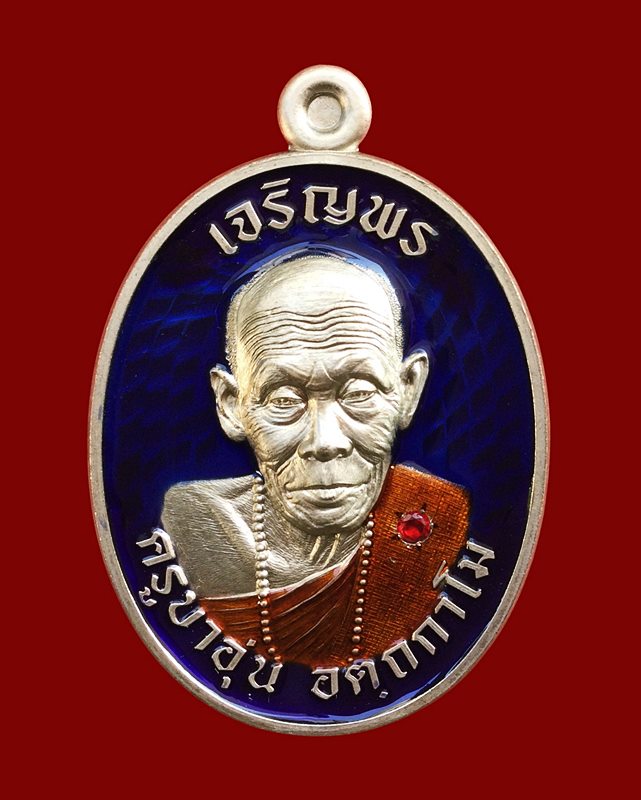 +!!เคาะเดียวllดง ตลอดสาย!!+ เหรียญ "เจริญพรบน"ครบ 8 รอบ ครูบาอุ่น อัตถกาโม วัดโรงวัว จ.เชียงใหม่(ศิษย์ครูบาศรีวิชัย) เนื้ออัลปาก้า ลงยาคุ้ยพื้นน้ำเงิน ลงยาจีวร ฝังพลอยแดง หลังยันต์ห้า เลข 63 พร้อมกล่องครับ