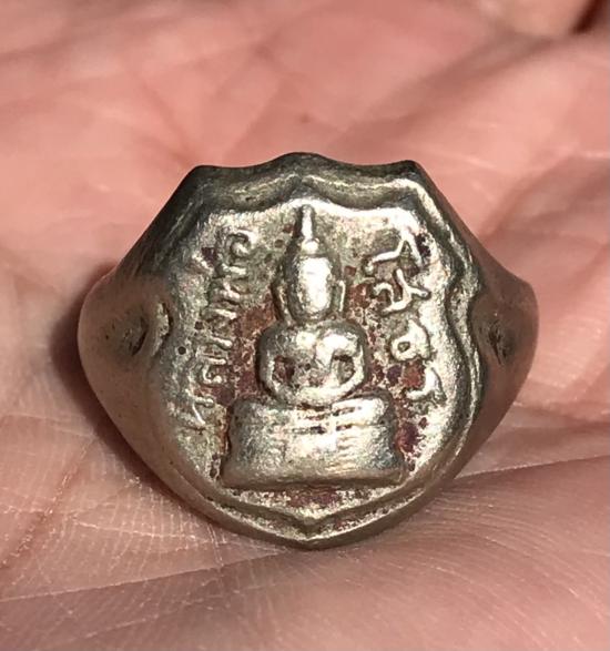 แหวนอาร์มหลวงพ่อโสธร หลังพระราชเขมากร วัดโสธรวฯ จ.ฉะเชิงเทรา เนื้ออาปาก้า ปี2503 แหวนขาด คล้ายรอยเชื่อมหลุดตามภาพครับ |