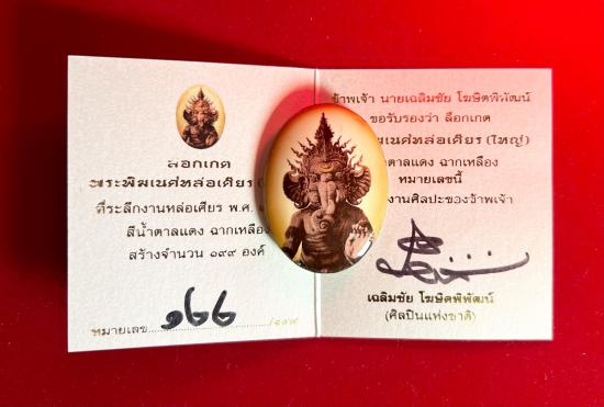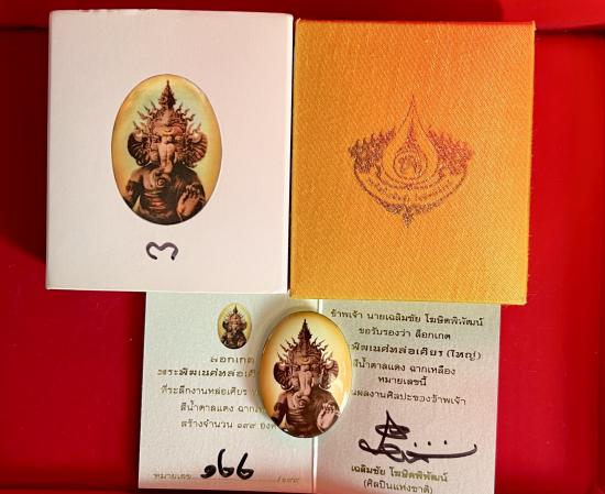 กราบขออนุญาตท่านอาจารย์เฉลิมชัย ขอแบ่งปัน ล็อกเก็ตพระพิฆเนศ เกรด 3 (ฉากเหลือง) พิมพ์ใหญ่ หมายเลข 122 อุปกรณ์ครบ ( ยังไม่ออกโฉนดนะครับ ) ขอบไม่มีบิ่น สภาพสวยครับ