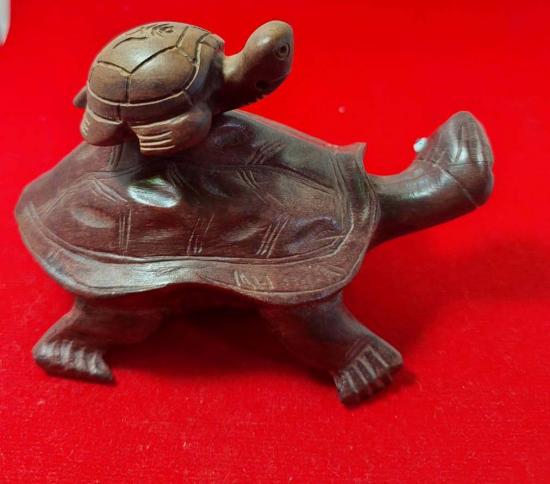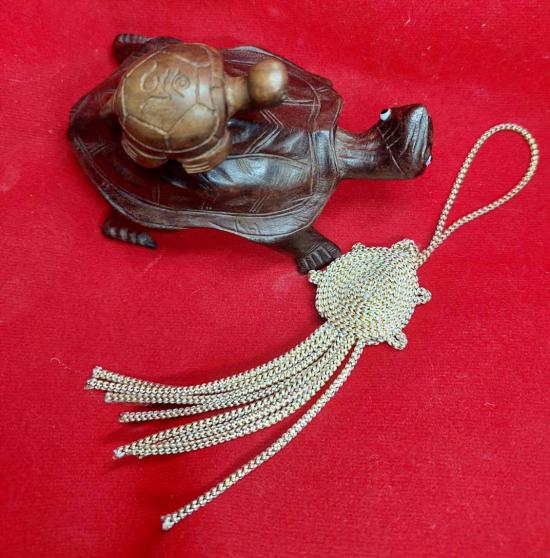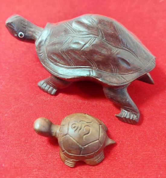 เหรียญ 5 เยน ทำเป็นเครื่องรางนำโชค กับ เต่าไม้แกะสลัก งานฝีมือแบบญี่ปุ่นดั้งเดิม เต่า (คาเมะ)