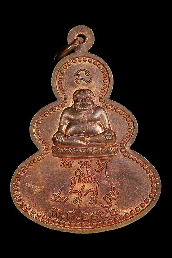 เหรียญน้ำเต้า รวย ดี มี สุข รุ่น หัวนอน ( เนื้อทองแดง , ตอก 2 โค้ด ) พ.ศ.2546 ( หลังเหรียญตอกโค้ด กฤษณะ ) ** 4 **