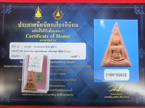 พระนางพญา หลวงพ่อถนอม วัดนางพญา พิมพ์หลังยันต์ดวง ปี2514 ติดรางวัลที่3 งานสมาคมพระเครื่องพระบูชาไทย |