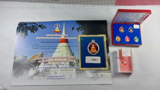 [ใบประกาศที่1] เหรียญเม็ดแตง พุทธคูณสยาม ชุดกรรมการ เนื้อเงินลงยา เลข ๖๙ หลวงพ่อคูณ