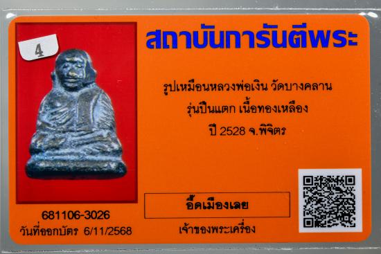 พระรูปหล่อโบราณ หลวงพ่อเงิน วัดบางคลาน รุ่นปืนแตก เนื้อเก่า พ.ศ.2528 พร้อมบัตรรับรอง